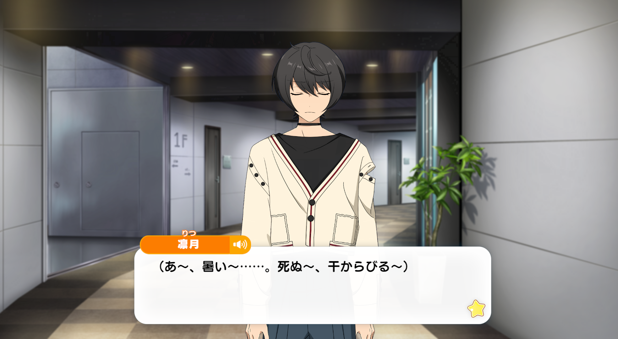 Ritsu: (Ahh, it’s so hot……. I feel dehydrated~, I'mma die~)