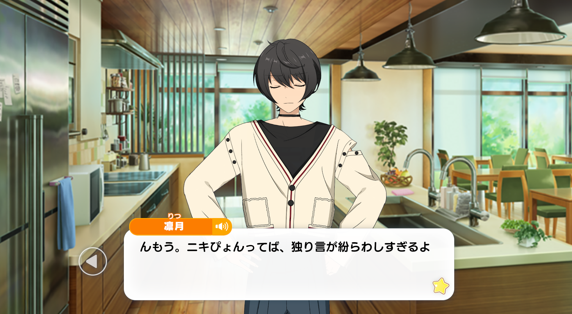 Ritsu: So you’re just talking anyway. Sure, I guess. Well, that’s to be expected of Nikipyon. The manager must have lots of faith in you.