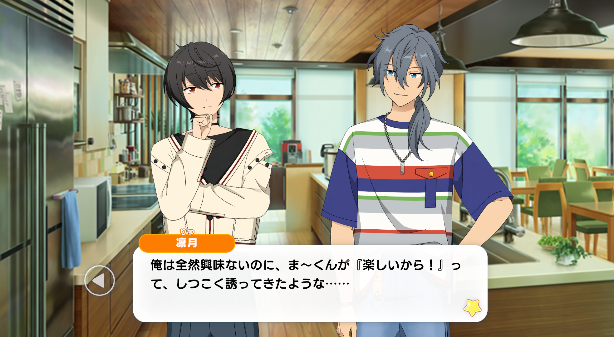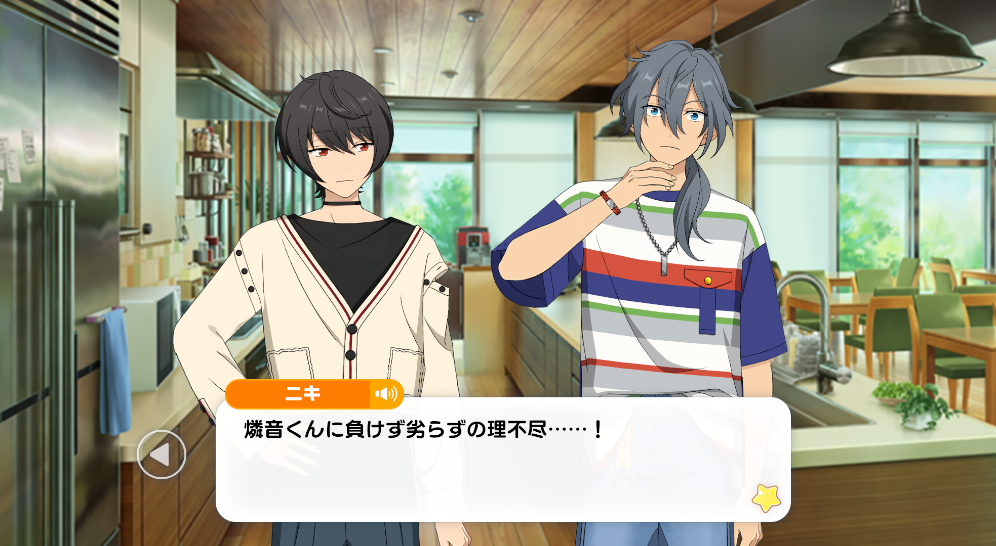 [1] This is referencing the recent Midori 3* idol story (Wan-derful Misunderstanding), which takes place in Spring. The story involves Midori getting spooked by Niki cooking a giant pot of suspiciously red liquid while also holding Daikichi’s collar in his hand.
